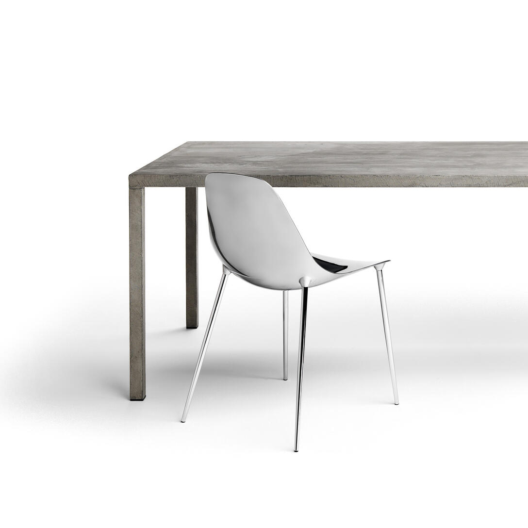 Seduta con scocca in pressofusione d’alluminio e struttura in metallo zincato, verniciata indoor/outdoor, non impilabile.