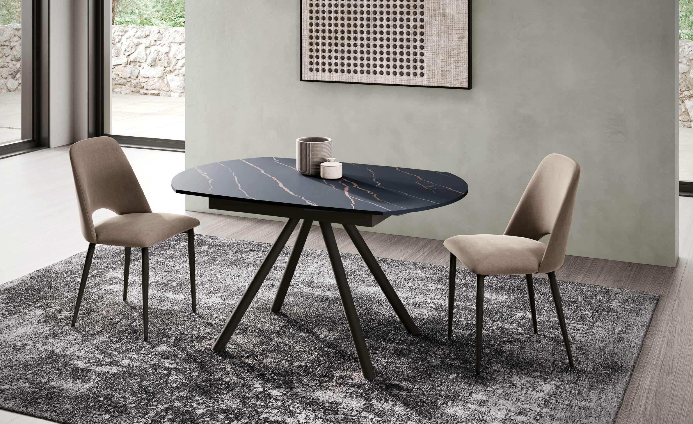 unisce eleganza classica e comfort moderno in una struttura leggera e versatile. Realizzata con struttura in metallo verniciato e seduta imbottita, è perfetta per ambienti domestici o contract come ristoranti, sale d'attesa e uffici.