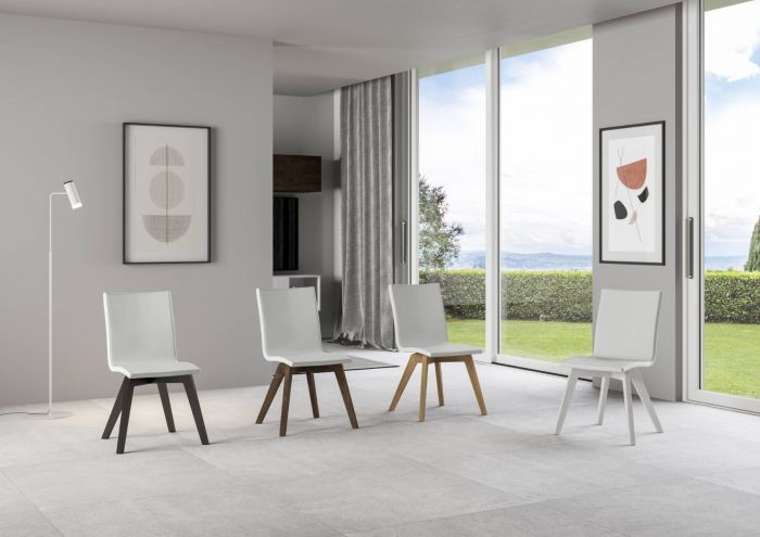Disponibile: seduta similpelle bianco - tortora - grigio; gambe: bianco frassino - quercia natura - noce - antracite