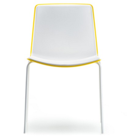 La sedia Tweet nasce dalla volontà di creare un elemento di arredo razionale e adatto ad essere inserito anche negli ambienti più connotati, rispettandone lo stile. La scocca è in polipropilene stampato a bi-iniezione, con finitura retro lucida e parte frontale opaca antigraffio. Il telaio in acciaio Ø14 mm è disponibile verniciato, cromato o cromato nero.