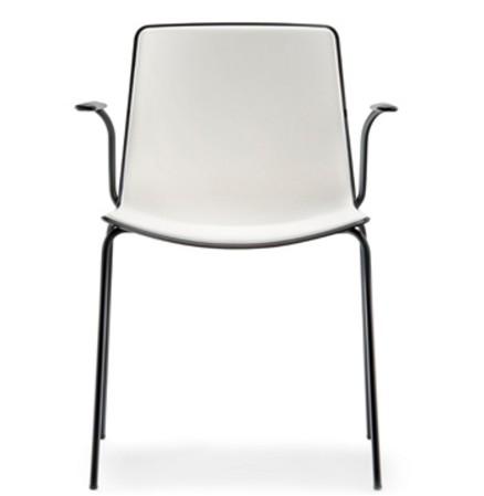 La poltrona Tweet nasce dalla volontà di creare un elemento di arredo razionale e adatto ad essere inserito anche negli ambienti più connotati, rispettandone lo stile. La scocca è in polipropilene stampato a bi-iniezione, con finitura retro lucida e parte frontale opaca antigraffio. Il telaio in acciaio Ø14 mm è disponibile verniciato, cromato o cromato nero.