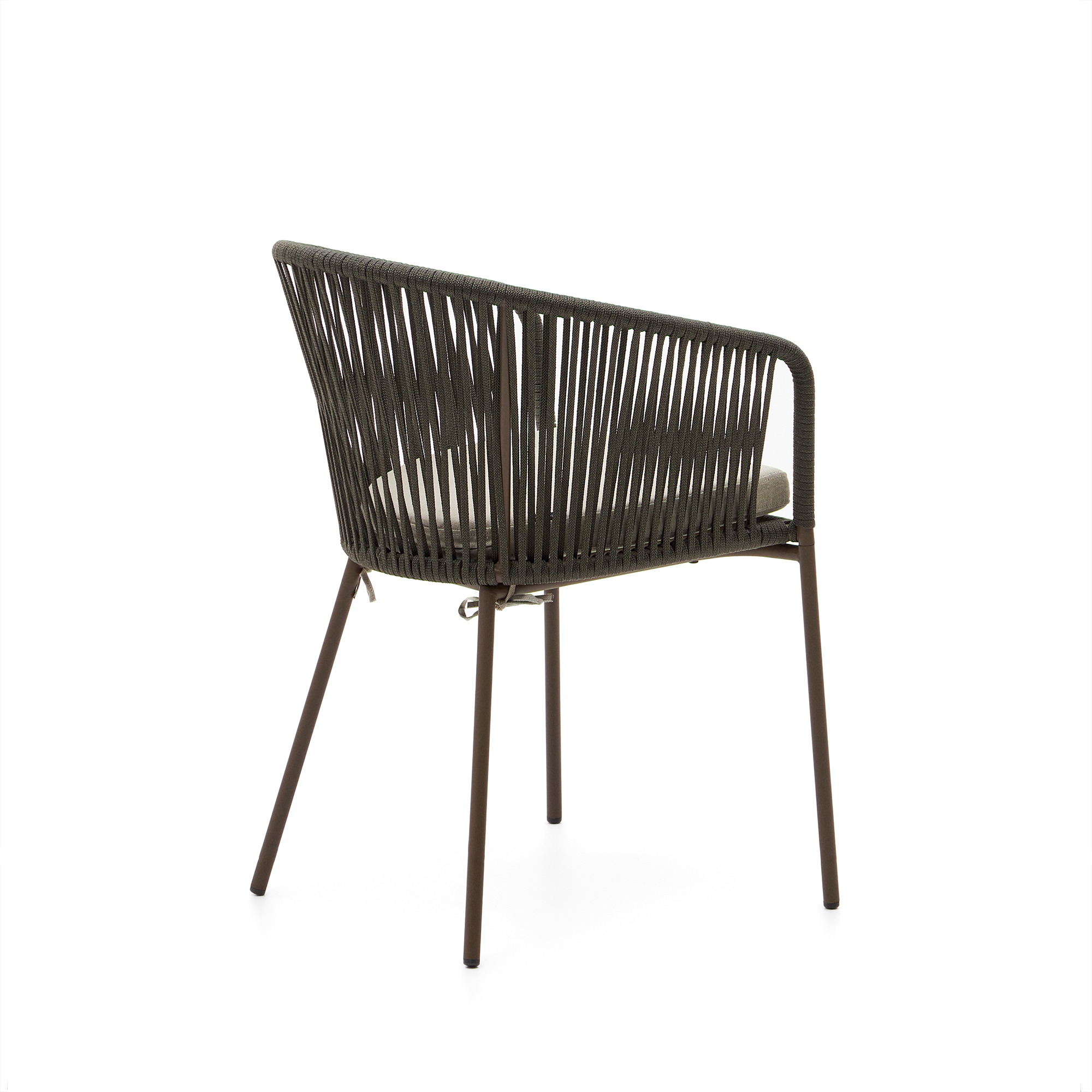 Per i pasti dentro e fuori casa, la sedia Yanet aggiunge un look casual ad ogni tipo di ambiente, grazie alla sua seduta con corda intrecciata a mano e materiali adatti per poterla godere in esterno sotto coperto.