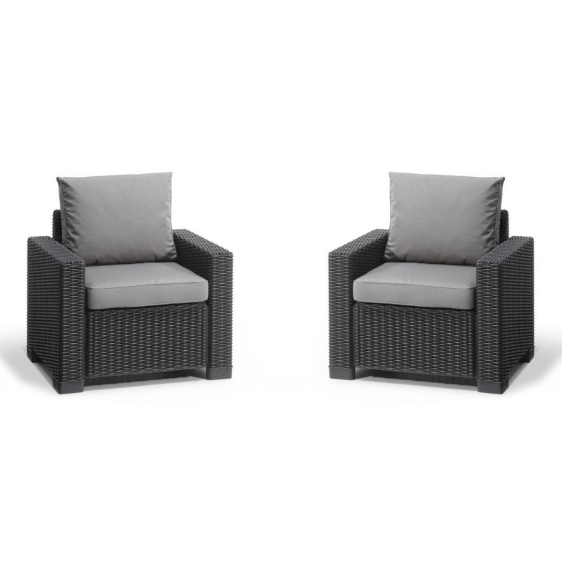 Rinnova il tuo spazio esterno con il set di 2 poltrone California di Keter, l’ideale per creare un angolo relax elegante e confortevole in giardino, terrazzo o patio.