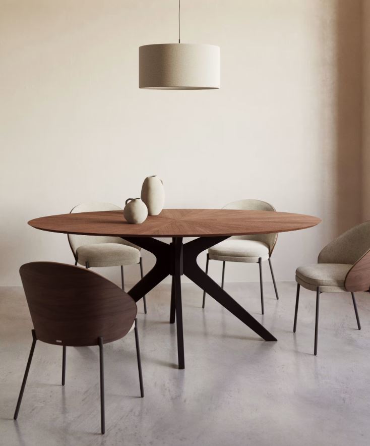 Ogni tavolo Naanim, con impiallacciatura di noce naturale e gambe in legno massello caucciú , è unico, con venature e sfumature esclusive.