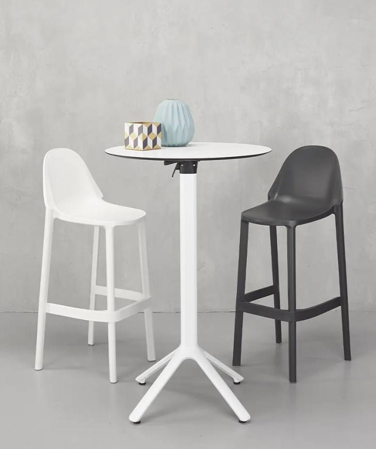 Realizzato in tecnopolimero riciclabile e rinforzato con fibra di vetro, lo sgabello Più è progettato per offrire solidità, durata e leggerezza.