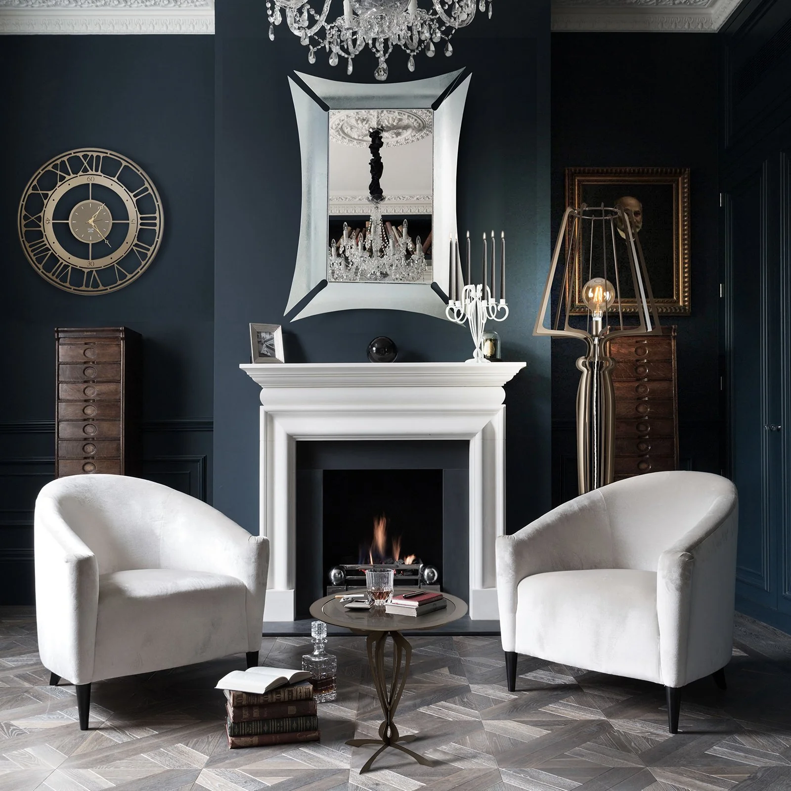 Lo specchio centrale è incorniciato da una struttura leggera ma scenografica, che lo rende ideale per ingressi, salotti o camere da letto. Disponibile in diverse finiture, si adatta facilmente a contesti moderni o classici rivisitati.