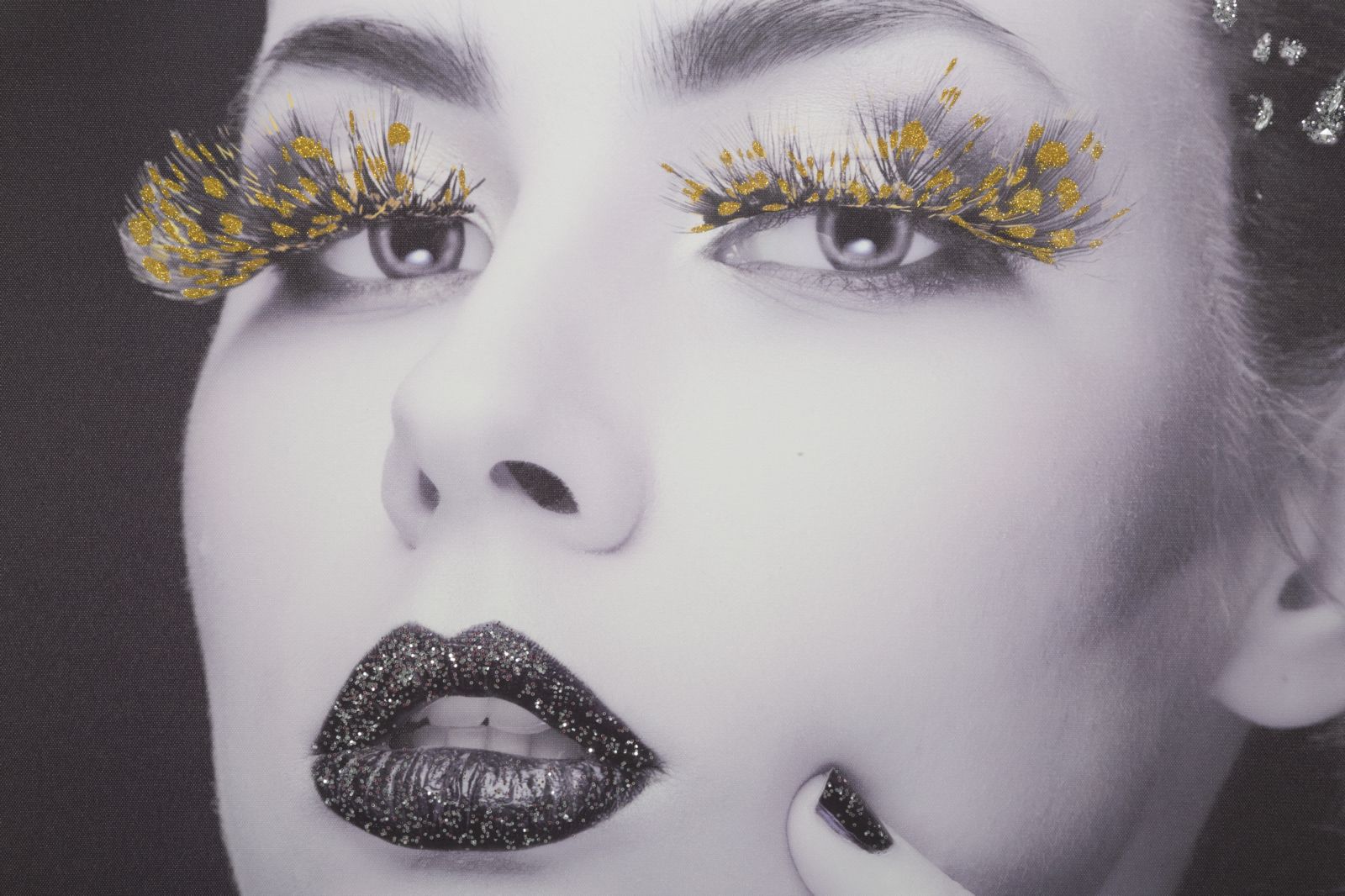 Stampa su tela con intelaiatura in legno raffigurante un volto femminile. Lo stile moderno, i toni sfumati e le eleganti applicazioni donano un tocco di classe ad ogni ambiente.