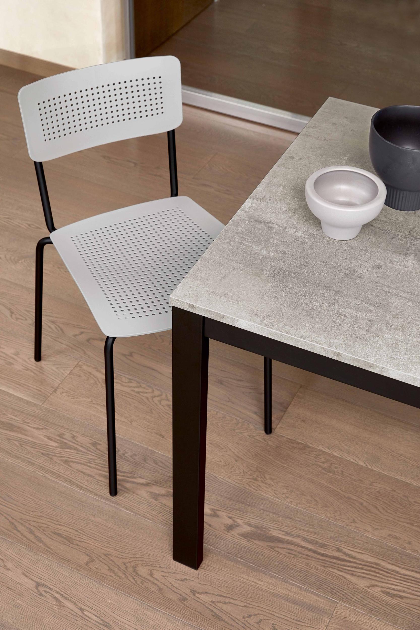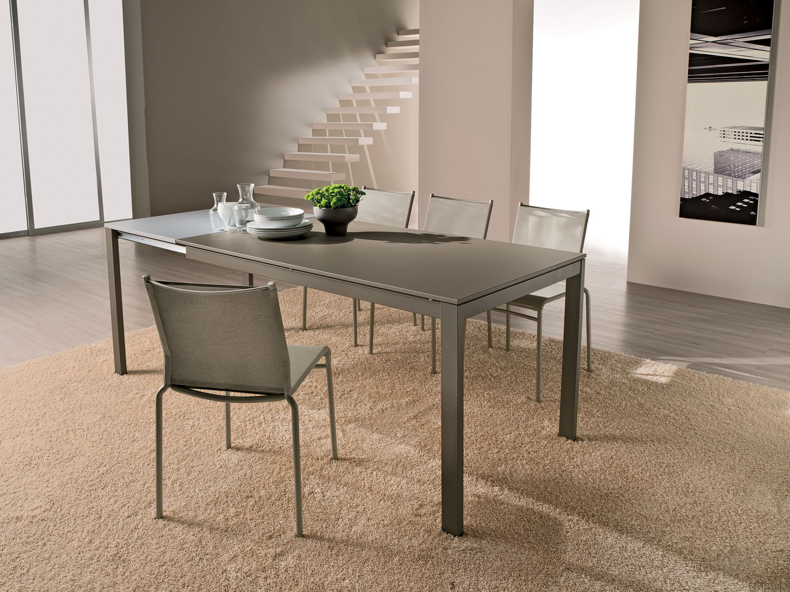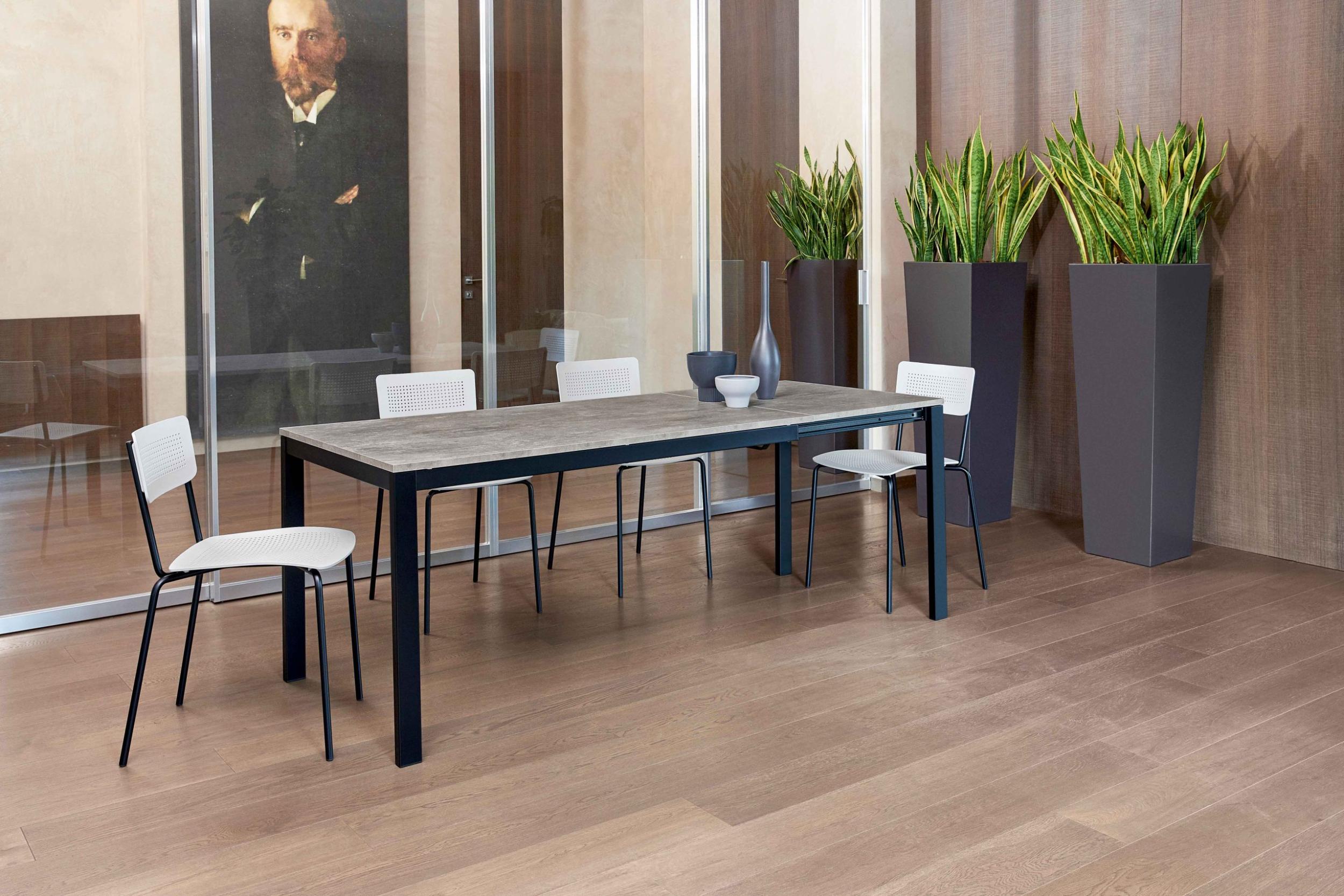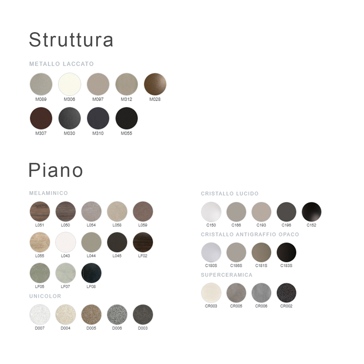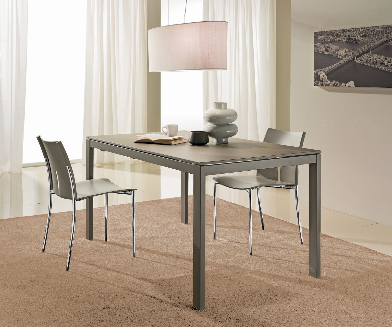 Tavolo allungabile con struttura in Acciaio laccato o Cromato e piano in Melaminico, melaminico materico, Unicolor Antigraffio, Cristallo, Cristallo Antigraffio e SuperCeramica.