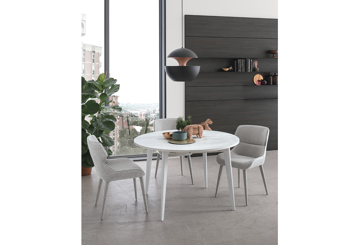 La caratteristica principale del Tavolo Aiace è il suo meccanismo di apertura semplice e intuitivo, che consente di passare da un tavolo di forma circolare con un diametro di 120 cm a una configurazione ovale di 180 x 120 cm.