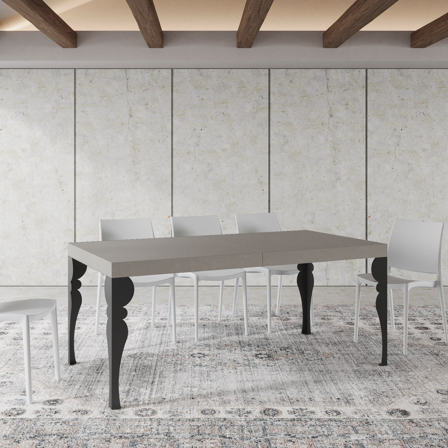 Tavolo allungabile Paxon da 180 cm, dal design moderno dallo stile ricercato e stravagante, si adatta a qualsiasi stile di arredamento e si rivela la scelta ideale sia come tavolo da pranzo che come elemento d'arredo per il soggiorno, dove poter accogliere i propri ospiti con stile. Il tavolo allungabile Paxon è in grado di estendersi progressivamente fino a 440 cm capace di ospitare 18 persone. Realizzato con pannelli in nobilitato, gambe in ferro, piano con lavorazione a Folding. Il sistema di estensione con guide telescopiche in alluminio e il sostegno centrale in dotazione rendono il tavolo stabile e robusto anche se totalmente allungato. Due allunghe sono alloggiate sotto il piano pronte all'utilizzo mentre le rimanenti tre vanno riposte altrove. Prodotto Itamoby Made in Italy Dimensioni: Tavolo chiuso: L.180 P.90 H.77 cm Lunghezza con 1 allunga: 232 cm Lunghezza con 2 allunghe: 284 cm Lunghezza con 3 allunghe: 336 cm Lunghezza con 4 allunghe: 388 cm Lunghezza con 5 allunghe: 440 cm
