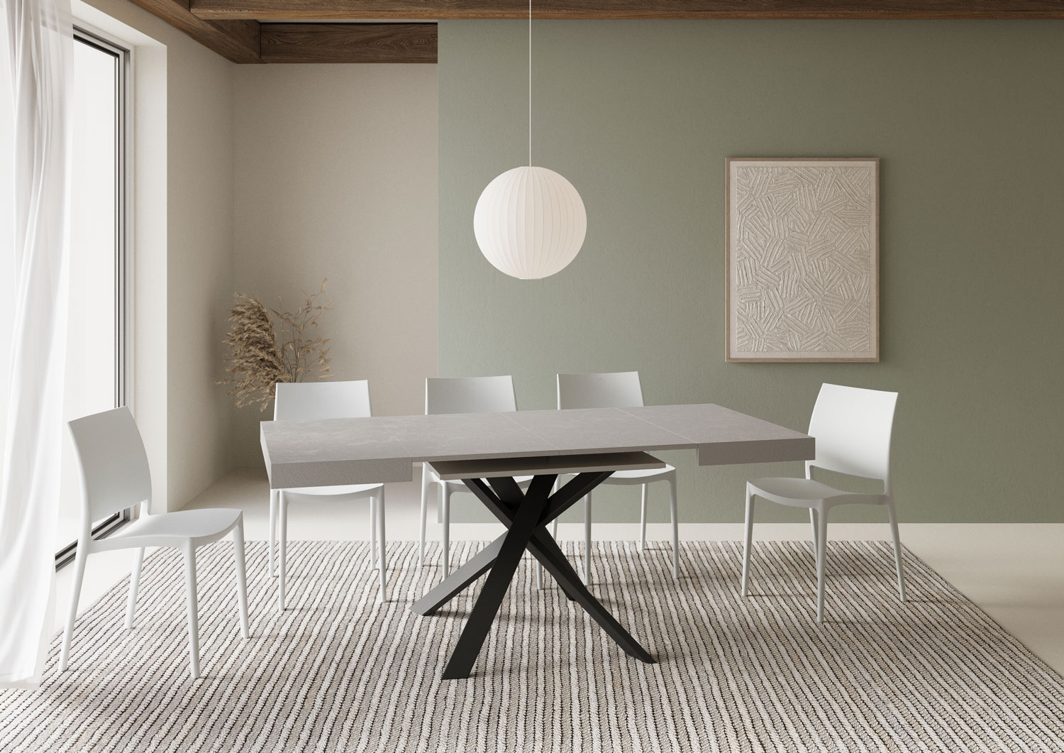 Tavolo allungabile Clerk da 90 cm, dal design moderno dallo stile sofisticato, si adatta a qualsiasi stile di arredamento e si rivela la scelta ideale sia come tavolo da pranzo che come elemento d'arredo per il soggiorno, dove poter accogliere i propri ospiti con stile. Il tavolo allungabile Clerk è in grado di estendersi progressivamente fino a 194 cm capace di ospitare 8 persone. Realizzato con pannelli in nobilitato, gambe in ferro, piano con lavorazione a Folding. Il sistema di estensione con guide telescopiche in alluminio rende il tavolo stabile e robusto anche se totalmente allungato, senza bisogno di ulteriori sostegni. Quando non utilizzate, le allunghe non trovano collocamento all’interno della struttura del tavolo e vanno quindi riposte altrove. Prodotto Itamoby Made in Italy Dimensioni: Tavolo chiuso: L.90 P.90 H.76 cm Lunghezza con 1 allunga: 142 cm Lunghezza con 2 allunghe: 194 cm