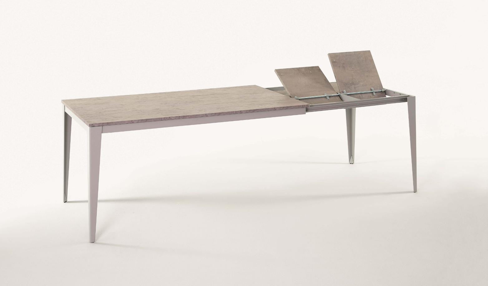 Tavolo allungabile dal design essenziale e contemporaneo, con solida struttura in acciaio laccato.