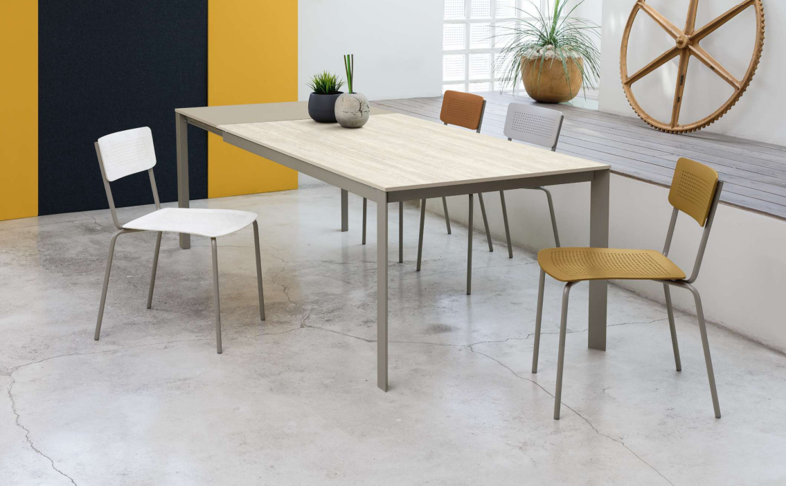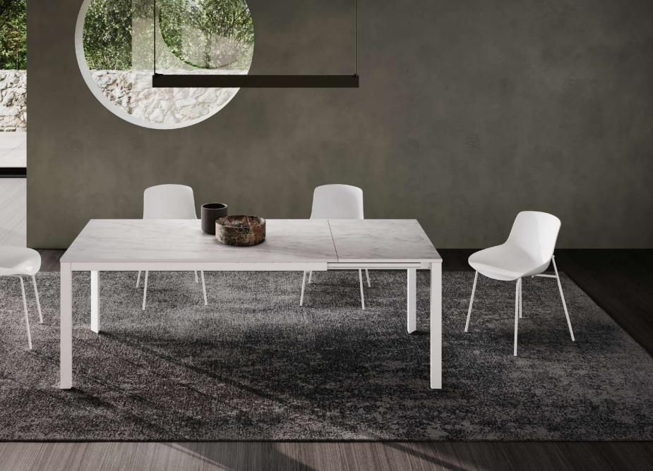Tavolo allungabile dal design moderno ed essenziale, pensato per ambienti contemporanei che richiedono funzionalità e stile.