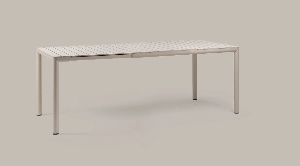 Anima green e linee morbide, giocate sull’assenza di spigoli e sulle forme arrotondate delle gambe, per il tavolo allungabile da esterno Tevere