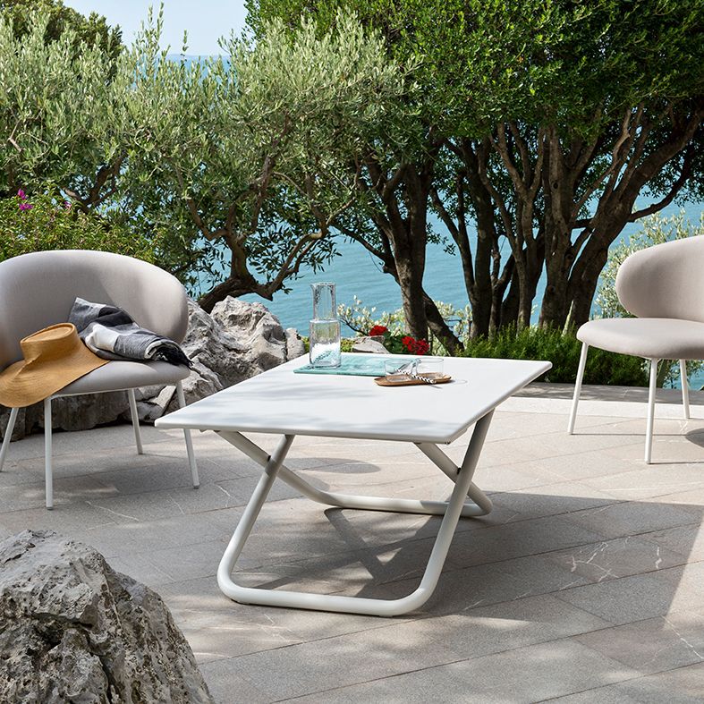 Il design minimalista e contemporaneo del tavolo si integra perfettamente in qualsiasi spazio esterno, aggiungendo un tocco di eleganza e modernità.