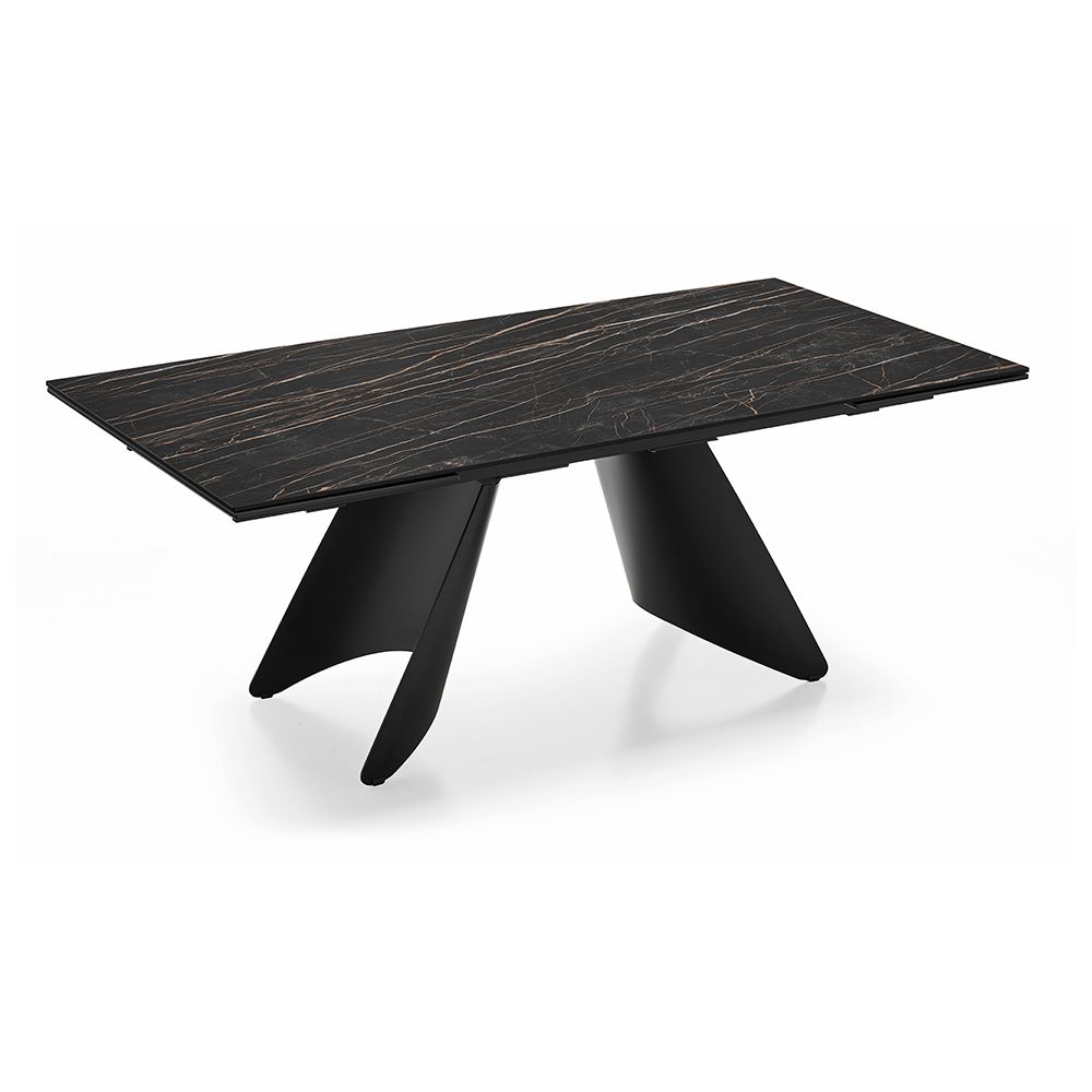 Il tavolo Orion è caratterizzato da un basamento in metallo curvato e verniciato, che gli conferisce un aspetto moderno e raffinato.