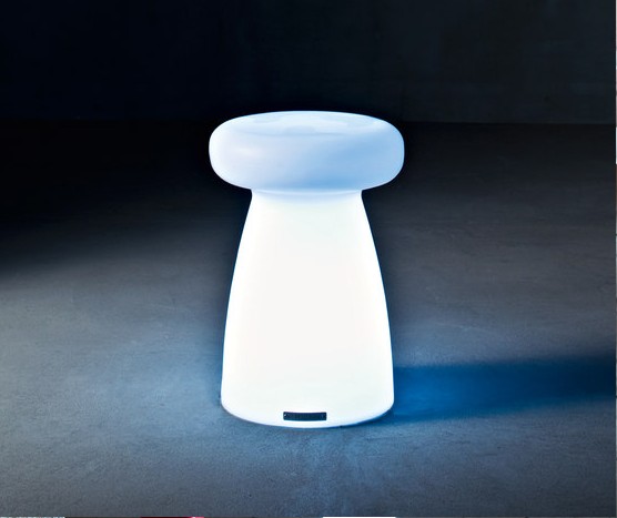 Sgabello ideato da Aldo Cibic, disponibile anche nella versione illuminata.