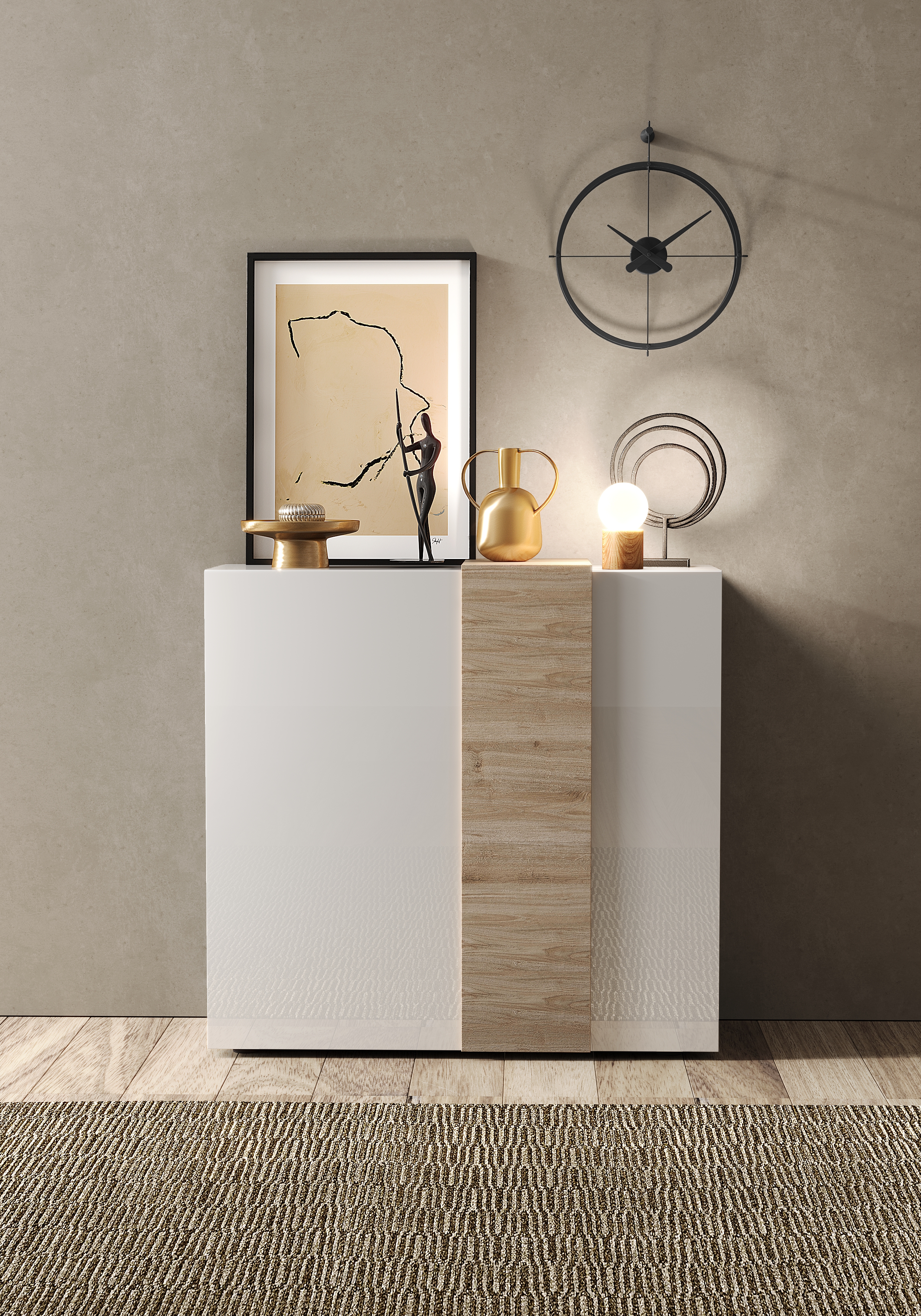 | Finitura | Bianco laccato lucido / Rovere cadiz |